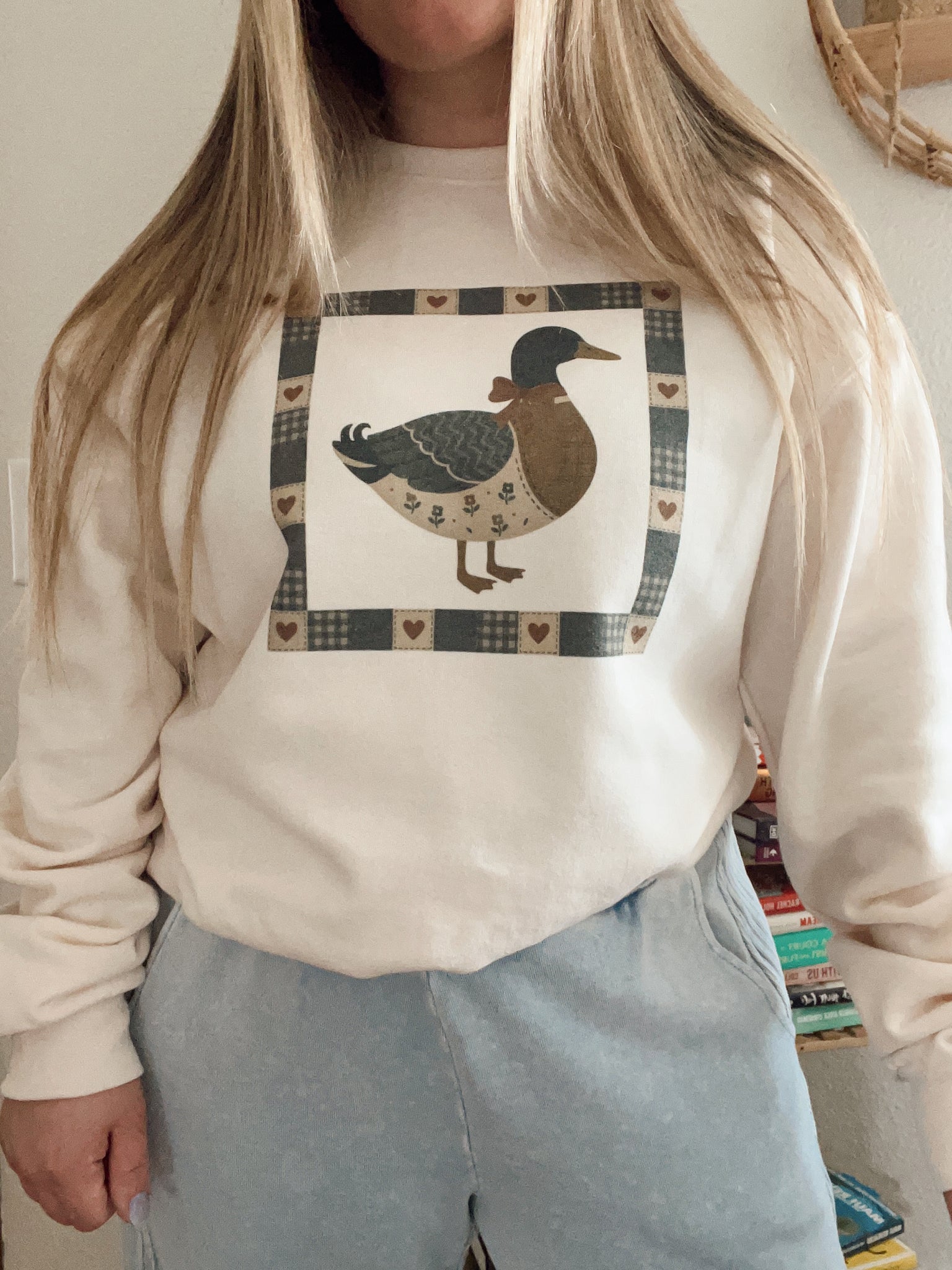 Printed on our Classic Crewneck in cream, 50/50 poly/cotton blend.